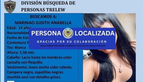 Encontraron a la adolescente de 14 años buscada en Trelew