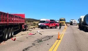 Según trascendió, el impacto tuvo lugar cuando uno de los vehículos que circulaba en sentido norte fue impactado en el costado del acoplado por un camión Scania que se desplazaba en dirección contraria.