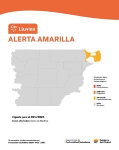 Además, el SMN emitió otra alerta amarilla por lluvias fuertes para el domingo en la costa de Biedma, donde se esperan precipitaciones de variada intensidad que podrían dejar acumulados de entre 10 y 20 milímetros, con posibilidad de registros superiores en forma puntual.