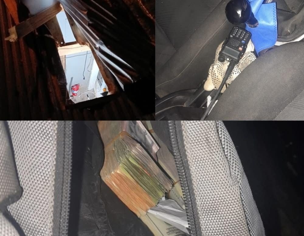 Tres hombres descendieron del rodado e intentaron escapar a pie. En la carrera, uno de ellos se descartó de una mochila que desbordaba dinero en efectivo. Sin embargo, la agilidad del personal policial permitió la captura de los tres sujetos a pocos metros; uno de ellos aún vestía guantes y pasamontañas.