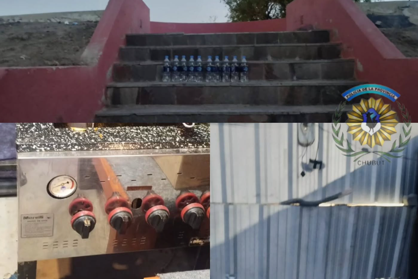 En la escalera ubicada detrás del puesto se hallaron diez botellas de agua. El damnificado manifestó que esas botellas habían sido dejadas previamente en un escenario, por lo que se presume que habrían sido sustraídas por los involucrados.