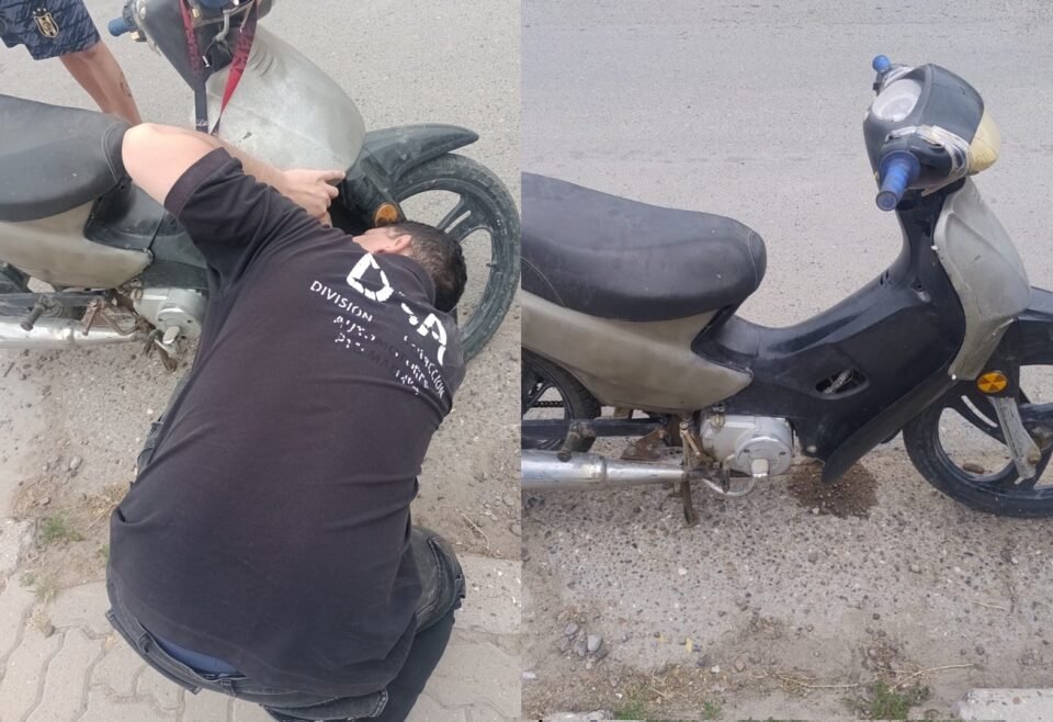 El hecho ocurrió este lunes 2 de febrero, cuando efectivos policiales que realizaban tareas de campo divisaron a un sujeto trasladando una motocicleta «a pulso» (empujándola) sobre la calle Piedrabuena, entre la Avenida Gales y España. Ante la actitud del sospechoso, los agentes procedieron a su identificación y a la inspección técnica del vehículo.