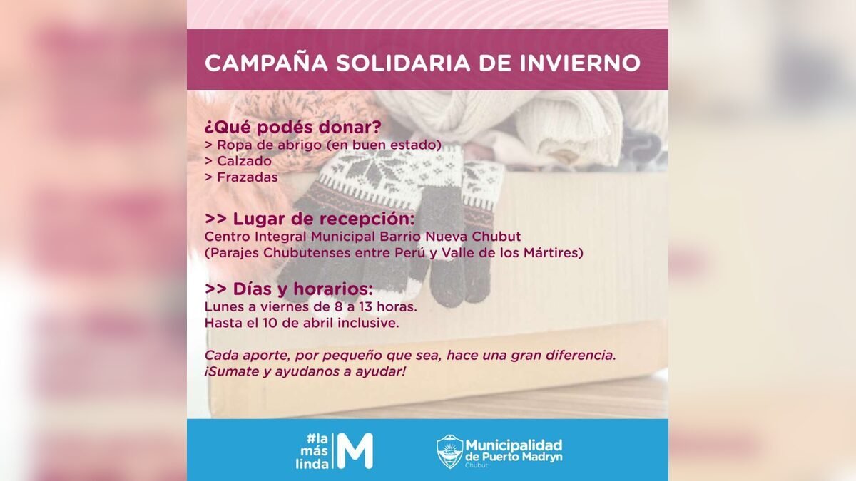 La Municipalidad de Puerto Madryn puso en marcha una campaña solidaria de invierno destinada a recolectar ropa de abrigo, calzado y frazadas para asistir a familias en situación de vulnerabilidad frente a la llegada de las bajas temperaturas.
