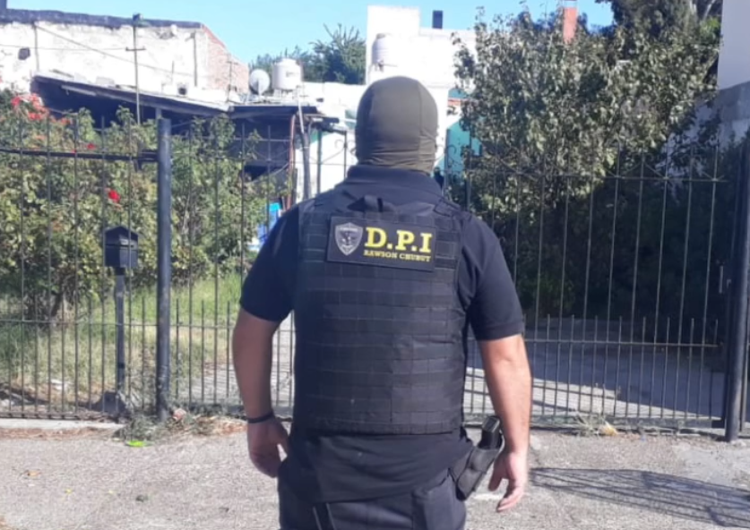 En el procedimiento colaboraron efectivos del Grupo Especial de Operaciones Policiales (GEOP), personal de la Comisaría Rawson, Policía Científica, la División Drogas Peligrosas y Leyes Especiales Rawson, y la Sección Operaciones Rawson.