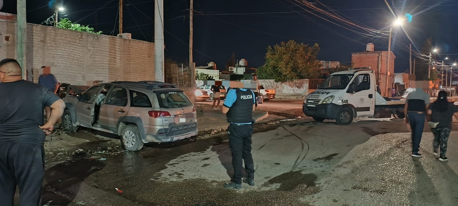 La intervención policial tuvo lugar el 28 de marzo alrededor de las 21:55 y 23:05, luego de que se reportara un fuerte estruendo en inmediaciones de las calles Pascual Daleoso y Epuyén, en la jurisdicción de la Subcomisaría Barrio INTA. Al llegar al lugar, los efectivos constataron que un automóvil Fiat Palio gris se encontraba sobre la vereda, junto a un poste de alumbrado público, tras haber colisionado contra el lateral de una vivienda y provocar importantes daños materiales.