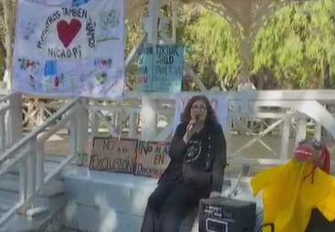 Familias, trabajadores y concurrentes del centro de día NICADPI se manifestaron este jueves en la Plaza Independencia de Trelew para visibilizar la situación que atraviesa la institución y reclamar por la implementación efectiva de la Ley de Emergencia en Discapacidad.